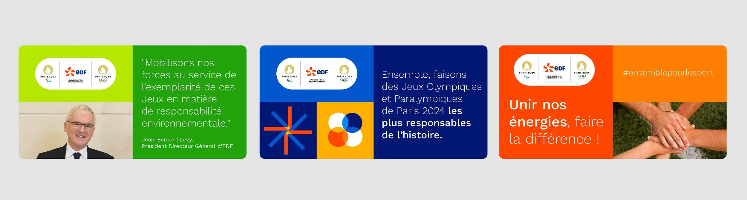 Pour marquer et marketer l’ensemble des prises de parole liées à ce partenariat, nous avons développé un univers graphique spécifique et singulier. Il a pour ambition de se distinguer de toutes les autres prises de parole du Groupe, mais aussi de toutes les autres initiatives sportives d’EDF.